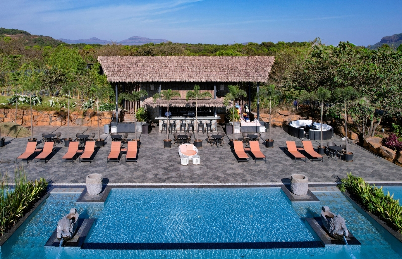 Unwind at our serene Pool Bar, perfectly set beside the infinity pool and surrounded by lush greenery. Located right against the island, the bar brings you closer to nature while offering a soothing ambiance and unmatched serenity.